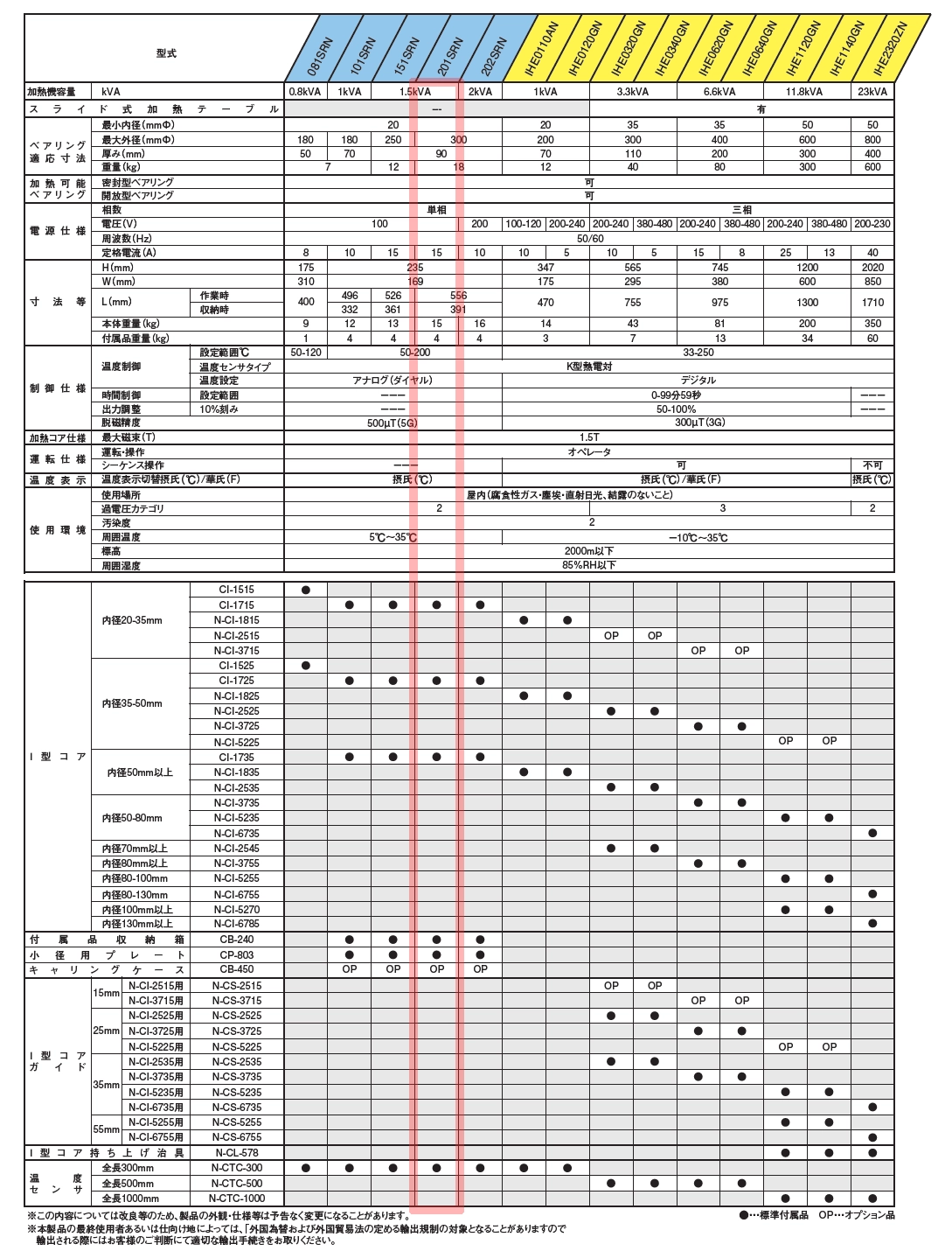 加熱の際に必要な温度センサが1本と、I型コアが3本、小径用プレートが1枚付属しており、付属品収納箱(CB-240)にまとめて収納することが可能です。